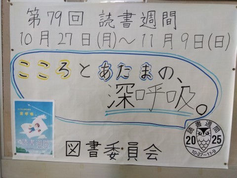 4月23日から5月12日の期間は、こどもの読書週間です。毎年、図書委員さんが周知のポスターを作成してくれます。