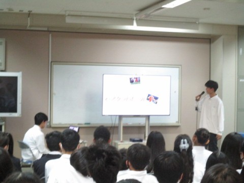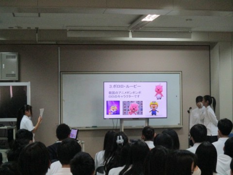 校外学習では大阪コリアタウンを訪問予定で、韓国の観光やお土産、ファッション、スポーツなど、様々な視点からの発表がありました。