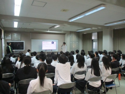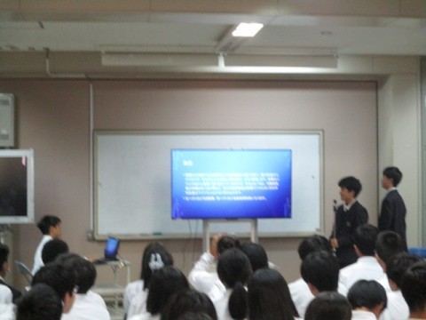 1年生では12月の校外学習に向けて、各クラスの班で調べ学習の発表を行いました。