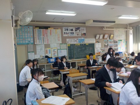 3年生は,もう中学校生活でのテストの回数がわずかとなってきています。名残惜しい(?!)とこではあるかと思いますが,1回1回を大切にして学びを進めてほしいと思います。先生たちは,生徒のみんなに中学校で教えるのがこの学年で最後なので,教えられることは何でも最大限に,もれなく学んでほしいと思いながら授業に臨んでいます。最後まで,少しも聴き漏らさない勢いで授業に取り組んでくれることを期待しています。