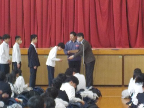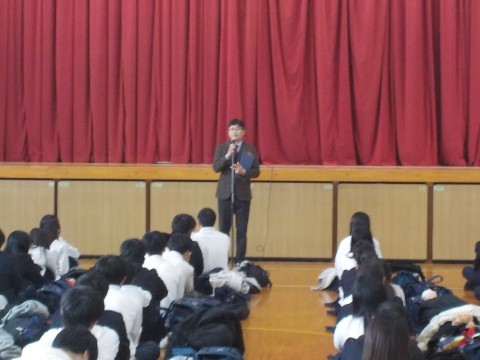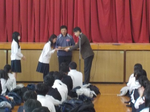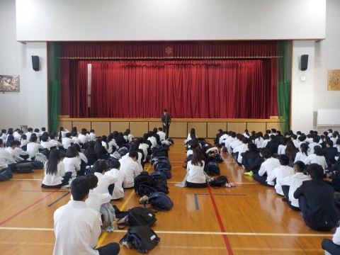本日6時間目は,今年最後の全校集会でした。表彰がたくさんありました。生徒たちの頑張りが伝わり,教職員一同も嬉しく見守っていました。表彰のあとは校長先生からのお話,今とにかく勉強をということで,吉田松陰の言葉を引用して生徒への叱咤激励がありました。年末で体調管理が難しい時期ですが,心身をリラックスさせながら来年を見据えていこうというお話でした。