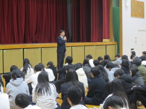 続いて、校長先生、生徒指導主事の先生から、冬休み・3学期に向けての心構えについてお話がありました。
