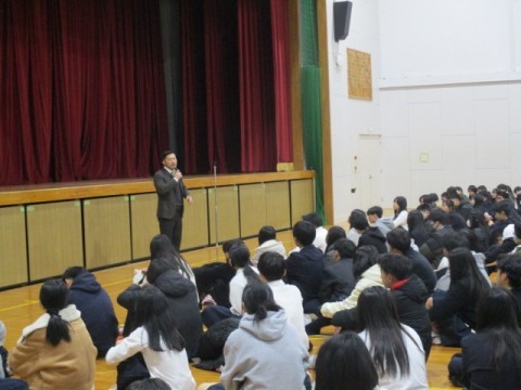 続いて、校長先生から「協力と調和」、生徒指導主事の先生から「選択」についてのお話がありました。