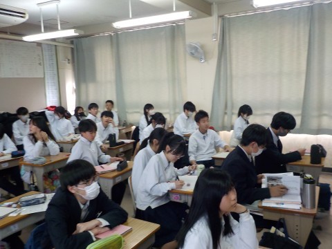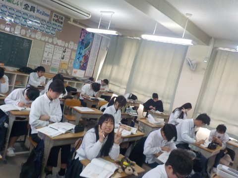 2年生は,全クラスほぼ先週1週間,感染症予防のため学年閉鎖でした。今日から全クラス復活で,まだ少し出席できない生徒がいましたが,登校した生徒はおおむね元気に過ごせていました。1週間という期間登校できず少し間があいたので,学校生活のペースを思い出しながら過ごしているようでした。