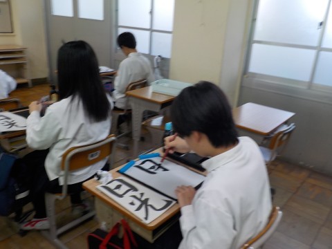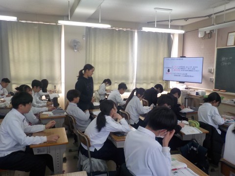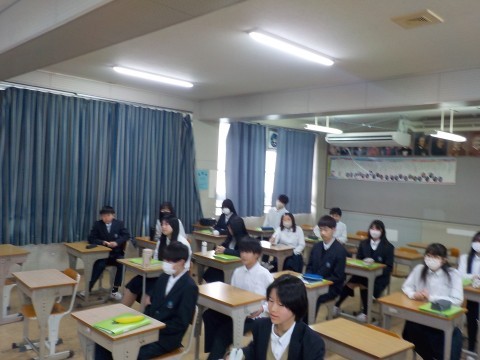 1年生は,3月の福南万博に向けて仕上げに入っています。国調べを経て,発表したい内容などの創作段階に入っています。本番が楽しみです。なお,ローテーション進路講話では,今日は2組が進路の先生からのお話でした。大阪府の入試制度の変更点などに熱心に聴き入っていました。