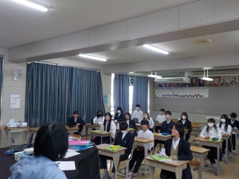 1年生は,以前感染症予防のため学年閉鎖をして行えなかった「命の授業」を3・4時間目に実施しました。講師の助産師の先生の質問に,少し恥ずかしさで控えめながら答えたり,お話に聴き入ったりと勉強になる2時間を過ごしました。延期で,タイトな予定の中をお引き受け頂きました近藤先生には,心より感謝申し上げる次第です。ありがとうございました。