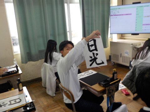 1-1の音楽では,音楽の先生による授業研究が行われました。教育センターから専門指導員の先生が来て下さりました。生徒はいつも以上に緊張した面持ちで,歌唱の際には少し固さが見えたものの,全般的には先生の指示をよく聞いて活動していました。他の教科の書道も理科も,よく集中できていたと思います。