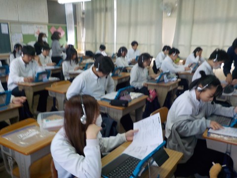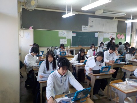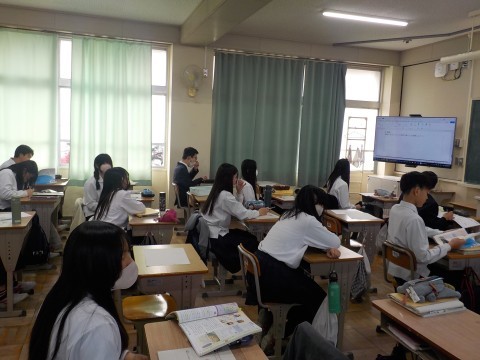 2年生では、沖縄調べ学習をしています。今日の6時間目には、各自でパソコンでまとめた内容を各クラスで発表しました。来年度の修学旅行がより良いものになることを期待しています。 -