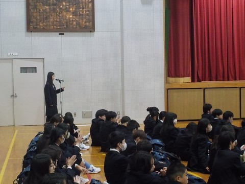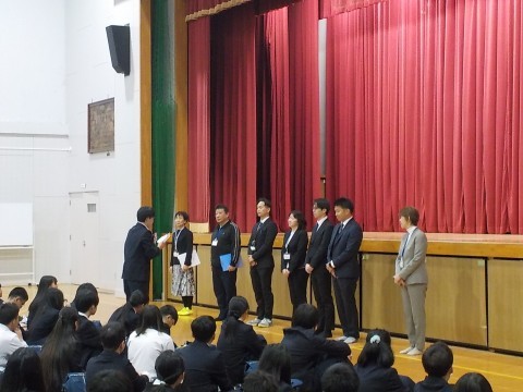 希望を胸にした新入生の皆さんと、たくさんの保護者の皆さまが福泉南中学校の校門をくぐりました。ご来賓の皆様、教職員の見守る中、新入生は少し緊張した様子ながら、真摯な態度で式に臨んでくれました。素晴らしい入学式でした。