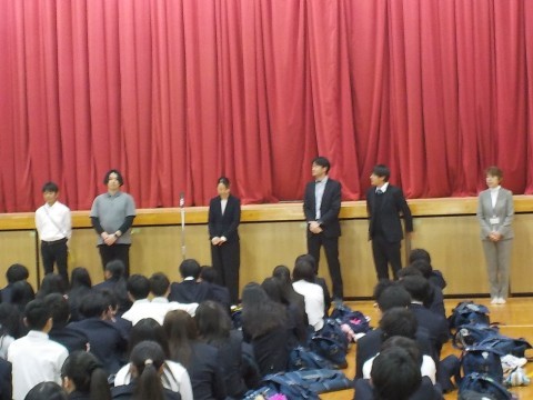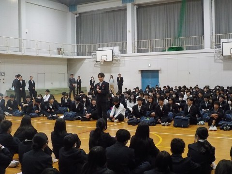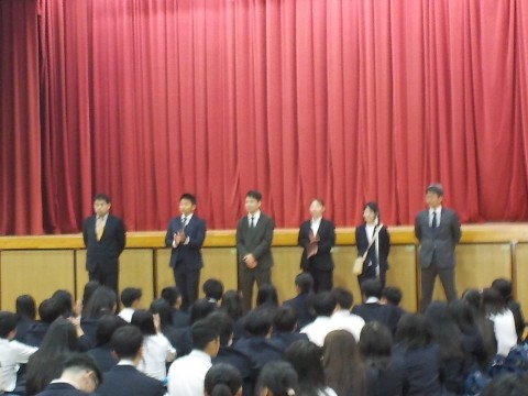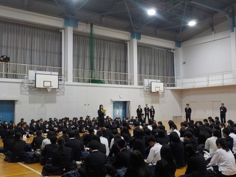 明日4月3日は、66期生の入学式になります。桜も程よく花開き、明日には満開の姿を見せてくれそうです。今日は2年生の皆さんが体育館の準備に登校してくれました。手際よく準備をしてくれている姿に、ついこの前までは1年生だったのが先輩の雰囲気がでているな~と感じさせられました。我々教職員一同も、明日新入生の皆さんに会えることを楽しみにしております。