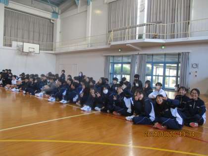 本日5・6時間目に、1年生で障がい者理解教育の一環として車いすバスケットボールの体験を行いました。3名の選手にお越しいただき、ご自身の経験やこれから社会を形成する中学生に対して必要な考え方などをレクチャーして下さいました。途中、実際に車いすバスケットボールのデモプレーを行って下さって、何気なくビッグプレーを決める選手に、会場から大きな拍手が起こりました。また、競技用の車いすを多数ご用意くださって、教員・生徒が実際に車いすバスケットボールのプレーを体験することできました。見ているのとは違ってなかなか思うように扱えず、それが逆に魅力となって生徒も一生懸命にボールを追いかけていました。車いすバスケットボールを通じて、障がい者理解という枠だけでなく、フラットな社会づくりに対する大切な考え方を学べた良い機会になりました。講演して下さった戦選手の皆様、本当にありがとうございました。