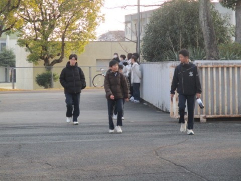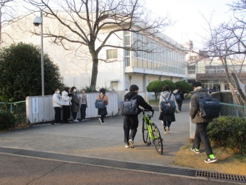 2年生では、来週に実施予定の保育体験の事前訪問にいくため、自転車を押して登校する生徒がいます。