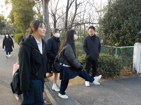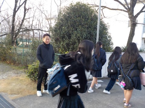 寒い朝が続きますが,毎日PTAの委員の皆さんが,早朝より生徒への挨拶運動に来てくださっています。お忙しい中,ありがとうございます。生徒もおはようの呼びかけに概ね元気に応えてくれ,気持ちよい朝のスタートとなっています。3年生は学年末テスト最終日です。気持ちを引き締めて登校していました。最後までファイト!