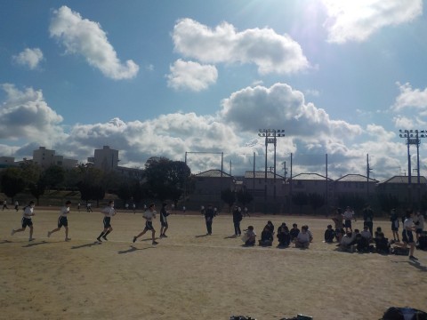 1年生の体育は持久走でした。これが最後の持久走とのことで,次回からは保健の座学に入ります。大地を噛みしめて走っていました。