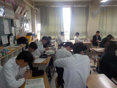 テスト前,最後の追い込みで勉強に励む(2/20)