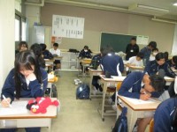 3年生は,一般選抜入試に向けての模擬試験です。自己採点中でした。試験中は本番さながらで,採点中も所々で反省の声が。真剣に取り組んでいて,とてもよい雰囲気でした。
