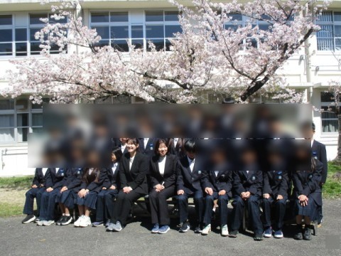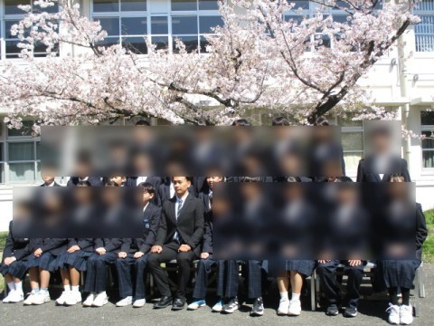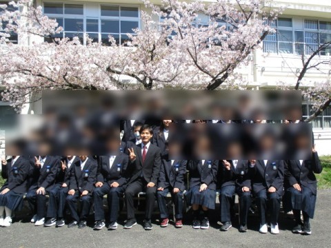 始業式・対面式が終わりクラス写真撮影。