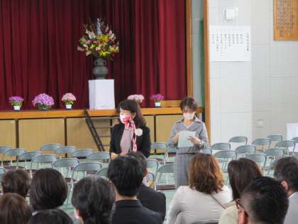 入学式後,現PTA会長・副会長の方々より,PTA役員の選出を行って頂きました。立候補して下さる保護者の方もいて,スムーズに決まったようです。ありがとうございました。