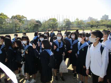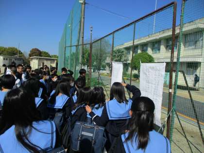 クラス発表です。2年生は運動場で発表しました。