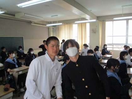 授業風景です。「3年生の英語,難しそうやな〜」「ほんまやな〜」といった表情も見られました。