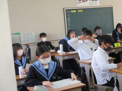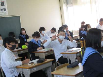 2年生の授業です。技術家庭科でした。植物の栽培に関するお話でした。