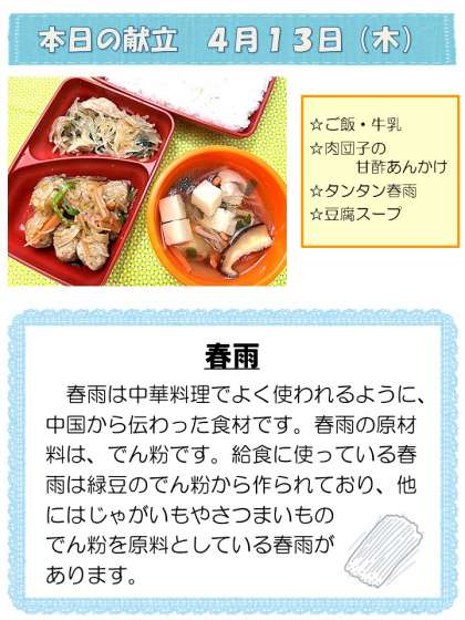本日の給食です。ご飯がどんどんススムおかずでした。