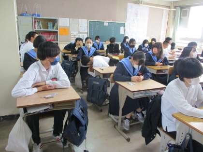 本日は3年生が全国学力学習状況調査の日になります。朝学活では担任の先生から説明があり,準備に取り組みました。真剣開始後も,静寂の中スムーズな滑り出しでした。