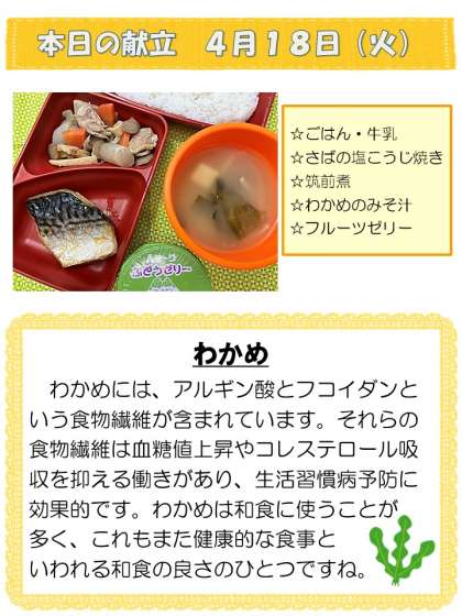 本日の給食です。ご飯によく合うお魚メニューでした。