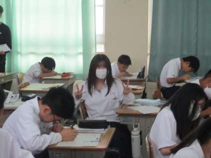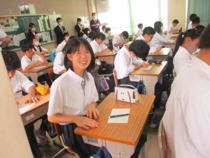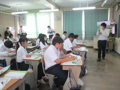 授業の様子です。1年生では6時間目に、理科の初任者教員向けにモデル授業を行いました。生徒はいつもと違う雰囲気に戸惑っていましたが、活動が始まるといつもの笑顔で和やかに授業が行われました。
