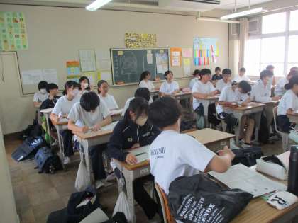 7月6日木曜日です。お日様が顔を出してお天気が戻ってきました。廊下はかなり蒸し暑く感じられるようになっています。教室の授業風景です。1時間目からどのクラスでも元気な様子が伝わってきました。