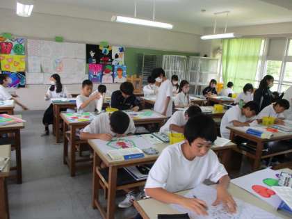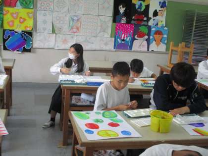 授業風景です。美術の授業で、水彩画を描いていました。いい色使いでしたよ〜。