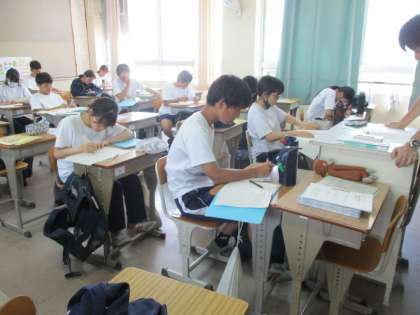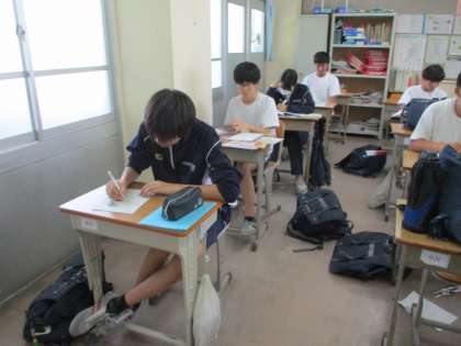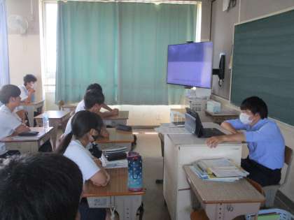3年生の様子です。理科では太古の地球における地表の様子を、動画で学習中でした。