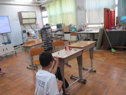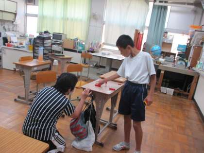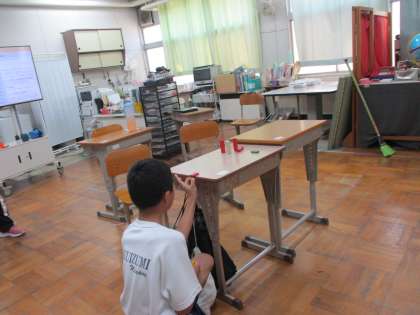 ふくなん学級です。先生と手作りゲームで対戦中です。うまく飛び出せるかな!