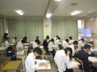 本日は週の中日の水曜日、いよいよ明日3年生は学力診断テスト、1・2年生は宿題テストになります。テスト前日ということもあり、どのクラスも授業への集中が平生にも増して高く感じました。ただ、1時間目は朝一番で眠たい人もチラホラいて、少しでも早く目覚めて集中して欲しいと感じました。
