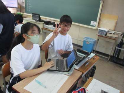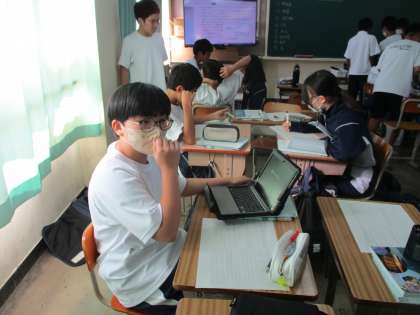1年生の授業風景です。PCを使っています。