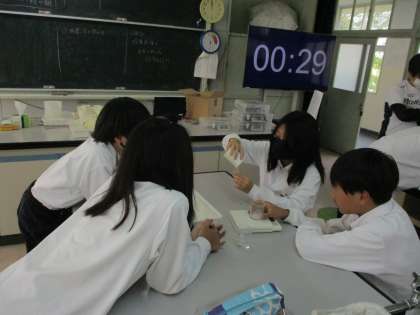 1年生の理科実験の様子です。