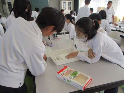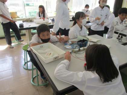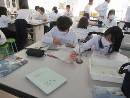 1年生理科の実験の様子です。
