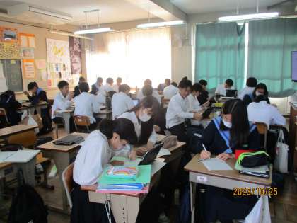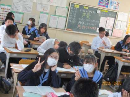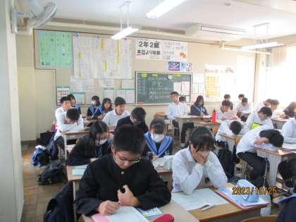 2年生の授業です。頑張って英語のセンテンスを覚えています。