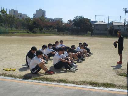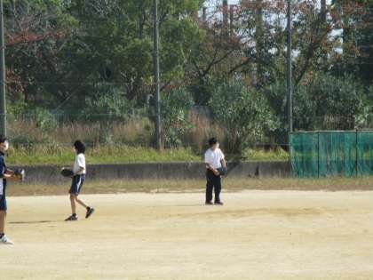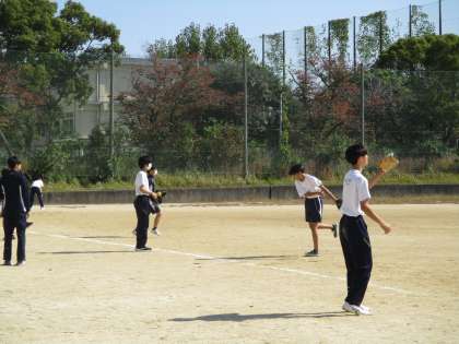 3年生の体育です。男子がソフトボール、女子が柔道です。