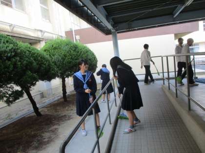 明日の文化活動発表会に向けて、教職員と生徒で準備中です。いい文活になるよう、願いを込めて掃除中です。