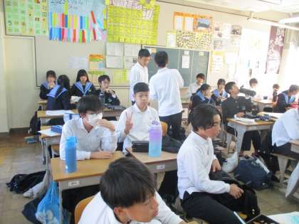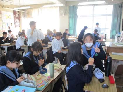 合唱コンクール出場クラスの生徒が、早めの昼食を摂りました。出場で緊張しているとは思いますが、しっかり食べて全力が出せることを祈っています。