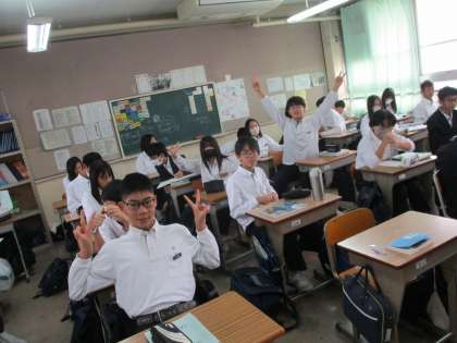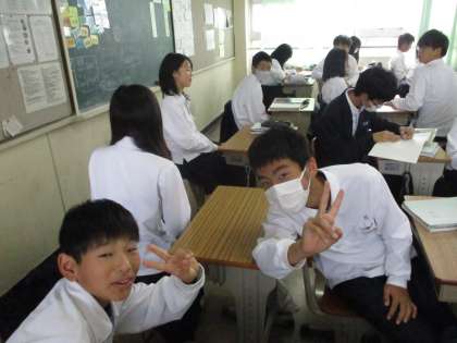 本日は2年生が職業体験で学校外での活動になり、3年生が学力診断テストで静かなため、授業でワイワイと活動しているのは1年生のみになります。朝1番の様子は少し眠たさが残っている人が少し見えましたが、カメラを向けると元気にポーズを決めてくれる人も多くいました。少しずつ気候が涼しいから寒いに変わるこの時期、体調に気を付けて欲しいと思います。