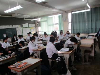 授業の様子です。プリントを見せてもらったら、整った字でまとめが書けていました。ノートやプリントは、その授業で何を学んだかの記録で、後で見返せるようになっていなければいけないので、整理して書けているのは素晴らしいと思いました。