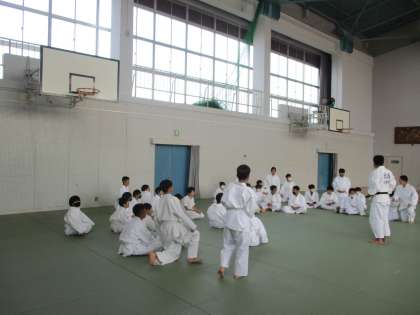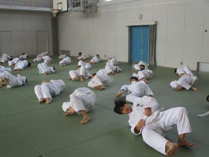 1年生です。柔道で「エビ」を習得中でした。寝技での技術ですね〜。