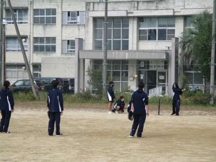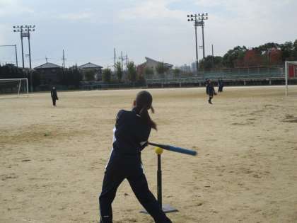 1年生女子の体育は、ソフトボールでのティー打撃です。なかなか上手く打てていましたよ〜。