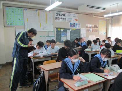 2年生です。数学の授業です。頭を柔らかく使わないと解けない問題でしたね。