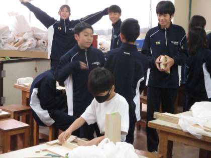 1年生技術です。本棚づくりに熱中しています。