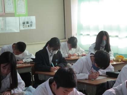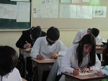 1年生です。社会科の歴史で、小テストを行っていました。