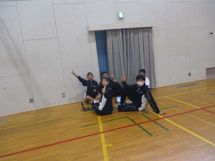 2年生体育の授業、ダンスを踊るそうでグループで確認をしていました。