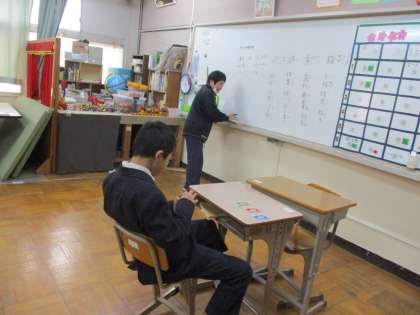 ふくなん学級です。百人一首の詩が流れていました。百人一首大会楽しみですね〜。